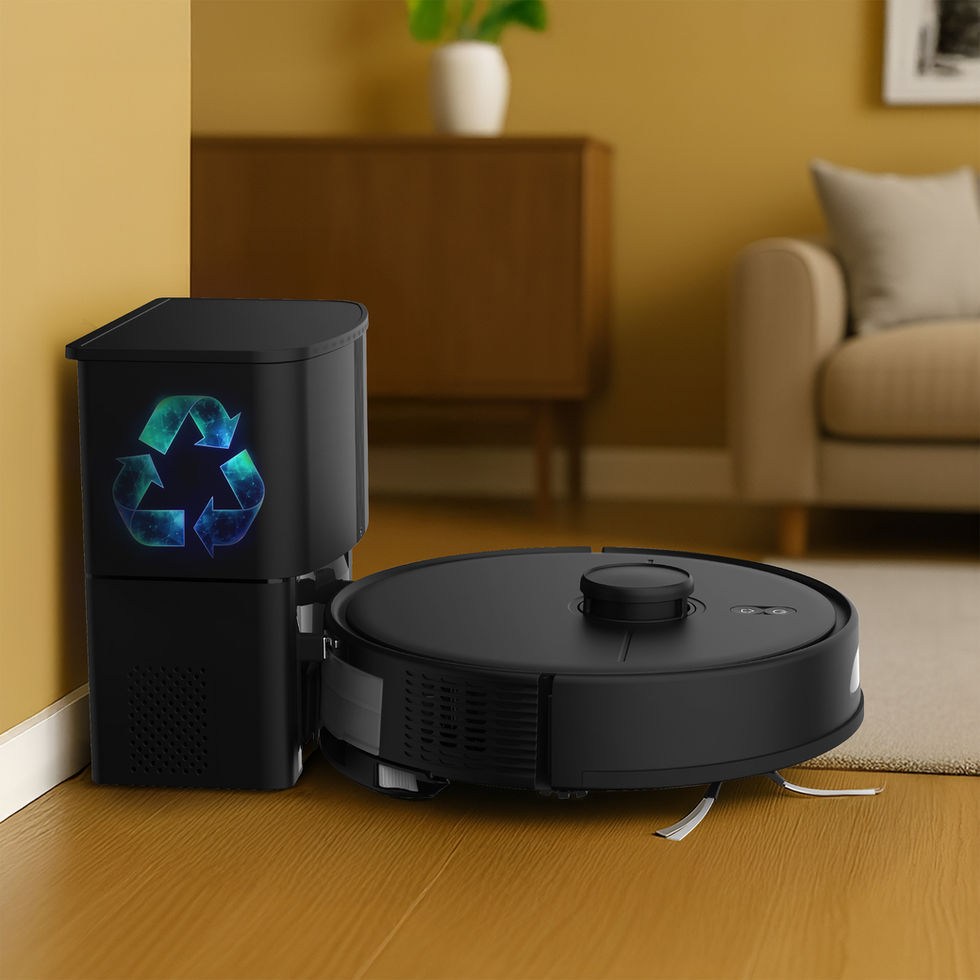 Automatically empties the dustbin after every clean — no manual emptying required.